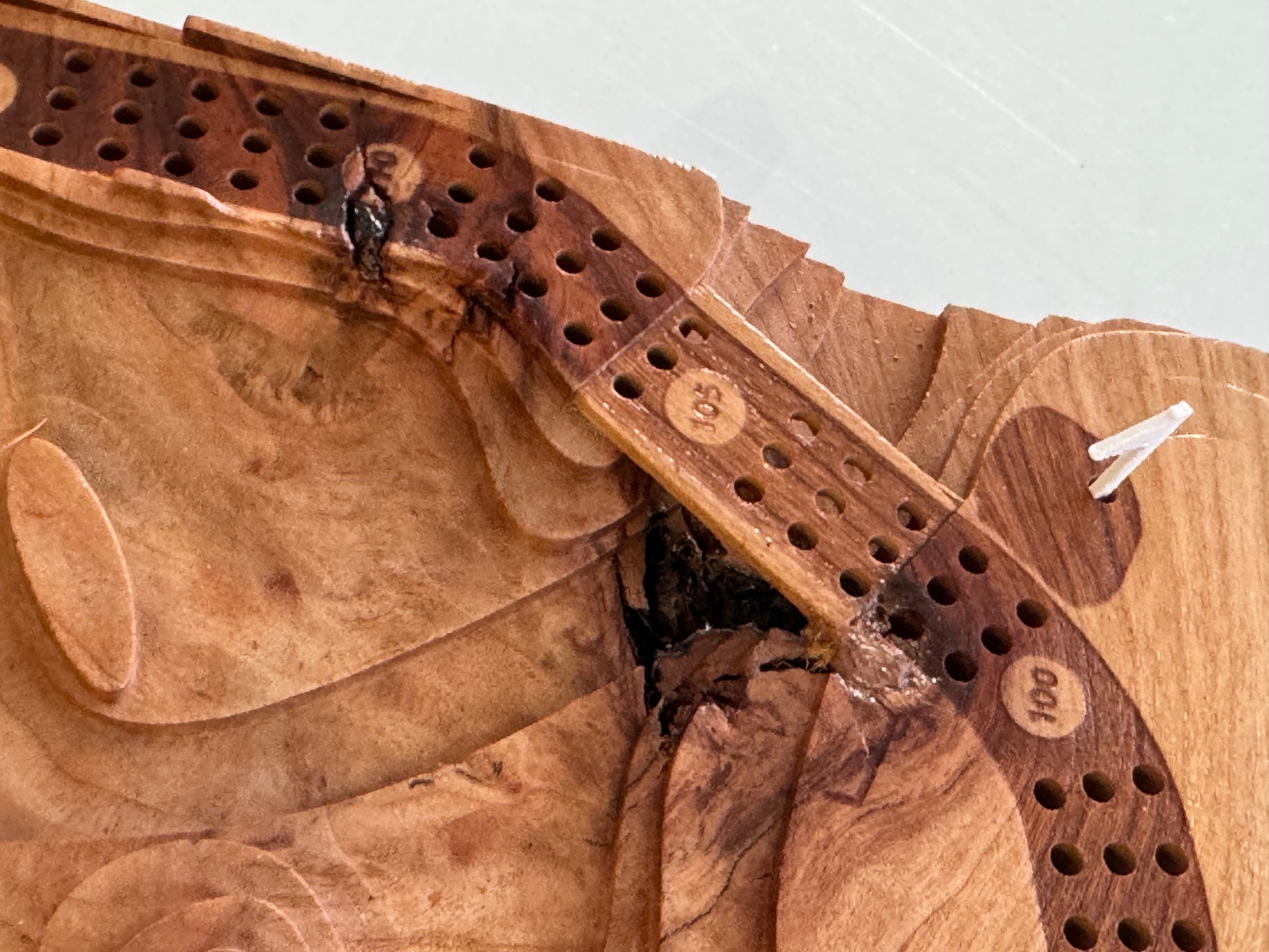 SPECIAL: Wood Imperfection. This Board has a knot hole under the back bridge and the 110 point mark. Reduced Price! :)